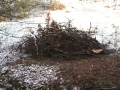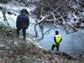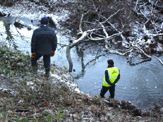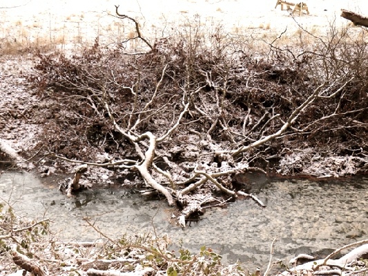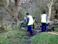 A party of three were asked to cross the river down steam, where it was shallow, and come back up to remove the smaller branches that could be shifted by hand. Those were placed on the opposite side of the river to where the winches were being operated. After a hard morning’s graft the river was cleared, so we packed up for a well earned rest and to thaw out.