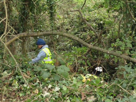 Dealing with the sprouting tree also didn’t take long and soon all eight of us were working on the ivy. The most testing part of this job is balancing on the banks as they can be 45 degrees or worse but we managed to complete the area by the end of the session.