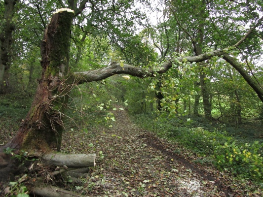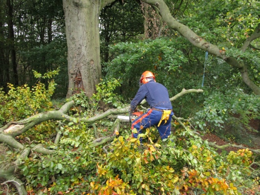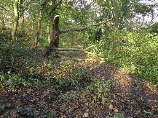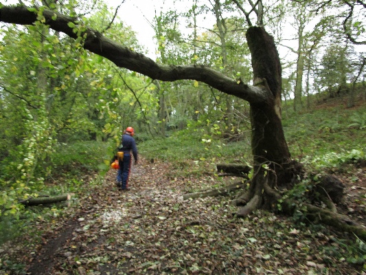 2: remove part of a tree which had fallen across a path on the Holywell side of the Waggonway. It formed an arch over the path originally so was not blocking access but as time passed the trunk had begun to sprout so it needed a heavy prune rather than any drastic treatment,