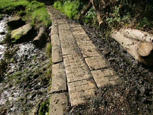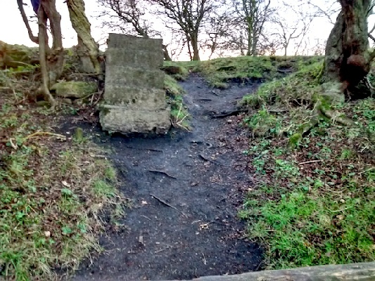 Incidentally, one of the sandstone blocks had drill-holes, suggesting to me that a rail (as in railway) might have been attached to it in the past – so perhaps the old wagonway (or coal railway) had sandstone sleepers. Anyway, we found no railway ballast (heavy gravel) despite digging into the wagonway surface in several places. So maybe the Victorian solution to the problem of securing the rails was to lay sandstone blocks and fasten the rails to them – just a thought.