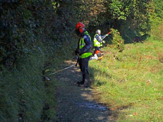The job for the day broke down into three parts: (1) mending the path at the place where a tree fell recently, (2) strimming vegetation on path verges, and (3) gully clearance.