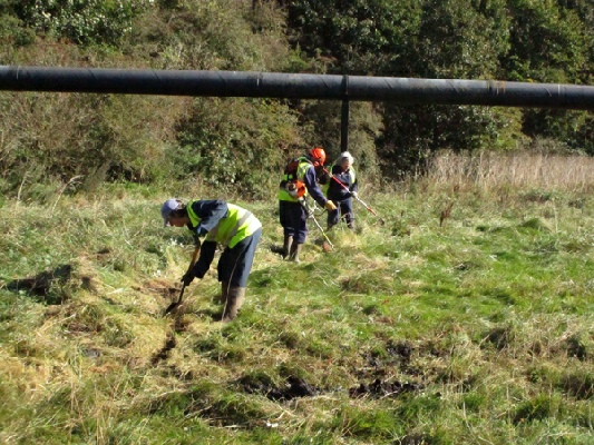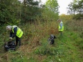 Another group commenced clearing the gullies (ditches) near the carpark pond. This involved strimming back the brambles, etc and clawing dead vegetation out of the gully with a rake. Gully clearance is a routine chore at this time of the year, and I’ve no doubt we will be returning to it later.