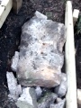 The first move was to demolish the old steps with sledge hammers. This turned out to be easier than expected, although it has to be said that one of the sledgehammers got broken in the process! Under the concrete was a flight of sandstone blocks. Both the shattered concrete and the blocks were reused in the new steps.