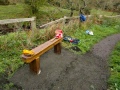 The party divided into two groups. The first group started by installing a waymark post at a fork in the footpath to point out the route of the Heritage Way. The next job was the installation of a new bench for the use of weary visitors, close to the Seaton Burn between the carpark and the Hartley West Farm stone bridge. It was crafted by one of our number who has carpentry skills, and features a double-layer seat, the purpose of which is to ensure that there are no fixings on the upper surface – a piece of carpentry magic! The space around the seat was consolidated with aggregate.