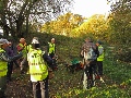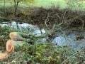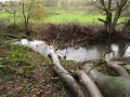 Meanwhile, the other seven volunteers set to work on a couple of fallen trees, also beeches, just upstream of the tunnel. These also were tending to block the flow of the river. Bowsaws and sheer muscle-power were the main ingredients here. We managed to clear large numbers of branches, large and small, out of the river. If you happen to pass that way, you will see the piles of timber resulting from this process.