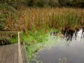 Next: Himalayan balsam. This is the invasive weed that is launching a determined assault on the riverbanks of the Dene. Have a look at our website if you want to find out how to identify and deal with it. We have been wondering how it got into the Dene. Until now, I had thought that the point of origin was between the Concord House footbridge and the railway culvert upstream of it. Today we have come across a major new clue: there is a large infestation on open land called the “Seghill Nature Reserve”, which is near a filtration pond on a side-burn that seems to drain the old Seghill landfill site. The balsam plants are seeding like crazy, even in October! We think the tip may be the original source of our balsam problem, since it is close to the Seaton Burn. We will definitely have to do something about this next year.