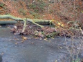 The party was asked to split up into task squads as follows. One squad set off for the stone bridge on the Hartley West Farm road. Under the bridge is a cattle barrier designed to keep the cows out of the Dene whilst swinging up to let any logs through when the river is high. It has to be draped with barbed wire during the summer when the cows are in their field, because otherwise they will force the barrier to get at greener grass. In winter, when the cows are indoors, the wire has to come off to avoid snagging logs brought down by the burn when in spate. Anyway, the barbed wire was removed by volunteers in waders – and stowed away for next year.