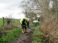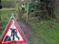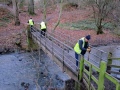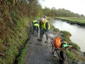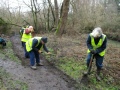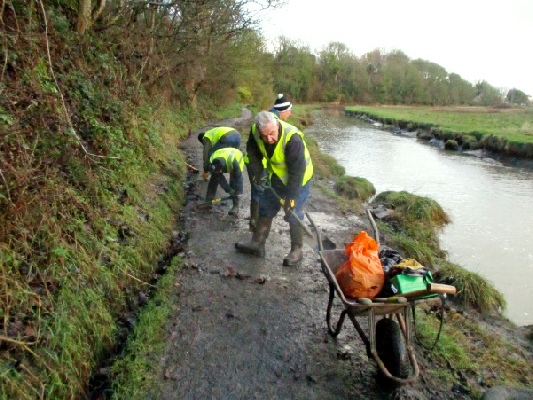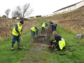 The main party went up the estuary to the wooden bridge and started to clear the gullies of mud and leaves. It wasn’t long before the expected rain started to fall, but luckily the trees that line the path provided us with some cover.