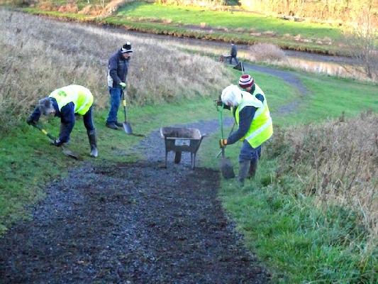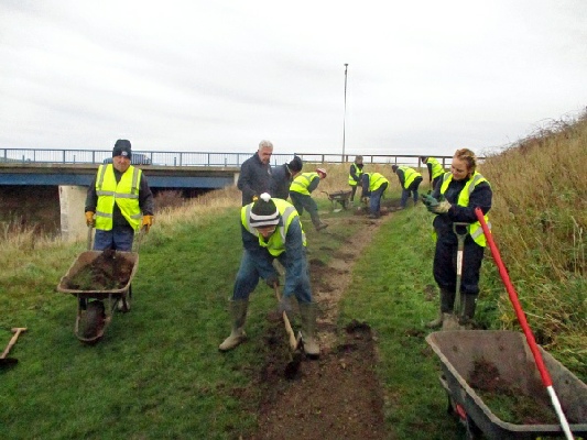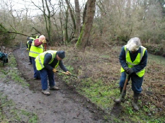 A project to improve the drainage of the path along the west side of the estuary was commenced this morning by nine volunteers, on a sunny but chilly day.