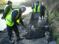 We started off using our hand winch to haul stones out of the river. It soon became apparent, however, that this was too slow so we hauled the stones out by hand to the river bank, then used the winch to get them up and onto the bank.