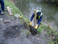 The main job was path restoration, but we also did a couple of side jobs. The first was to seal off a dog slide. In case you don’t know, what happens is that our canine friends have a habit, whenever they see water, of rushing headlong into it, splashing around, then clambering up the river bank to get out again. After this has happened a lot of times in one place, there is found to be a notch in the river bank and a lot of soil in the river, which is not good for water quality.