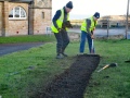 One group, of two volunteers, went to clear mud and leaves from the drainage ditch beside the Rest a While seat. This job only took a couple of minutes then they returned to the main party.