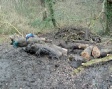 Although we had taken some fence posts and rails with us more were needed so three volunteers went down into the dene to where we knew there was an obsolete broken down fence, the rails of which had been removed. Although the posts had been cemented in, the number needed were persuaded to come out of the ground with a little cajolery from the pinch bar and more than a little perspiration from the workers. The rails were sorted through and the best taken for recycling. On the way back with the wood a large plastic barrel was removed from the river and taken back to be put with the rest of the rubbish collected during the morning. The job of getting the fence posts into the ground was no easy task as the fence is very close to large trees the roots of which were unavoidable wherever we tried to dig. However with much determination and not a little brute force the posts were sunk and the rails which had been cut to the required length were attached.