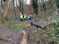 There were three areas we wanted to clear so we split into two teams, one team headed to a blockage about 100 yards downstream from the bridge at Concord House to finish the removal of a massive tree trunk which we had to leave a while back because time beat us then. A winch was set up and a snatch block, while the trusty chainsaw cut the trunk into manageable pieces.