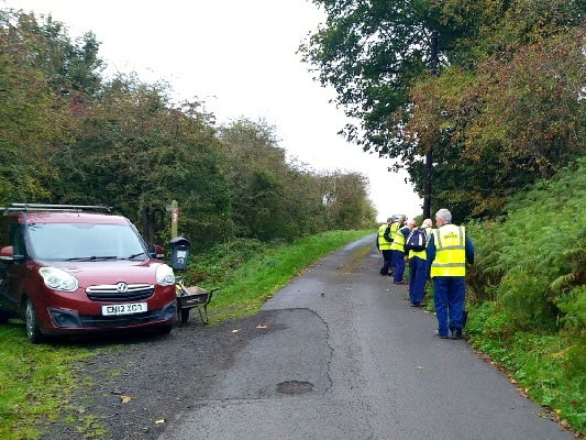 We assembled near the Northumbrian Water pumping station near Holywell, where we can conveniently park our tools van. We then marched, with all our tools, to the gate at the southern end of the embankment of the old railway. It this point we split into three groups.