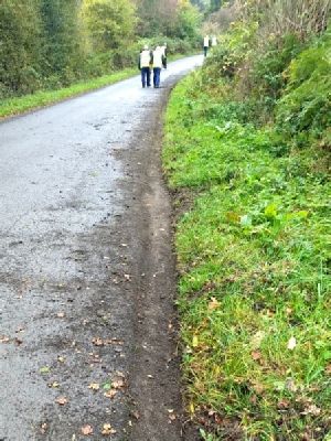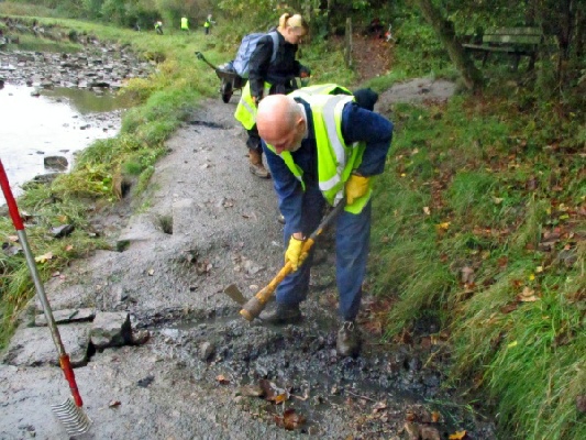 One group, of two volunteers, went to clear mud and leaves from the drainage ditch beside the Rest a While seat. This job only took a couple of minutes then they returned to the main party.