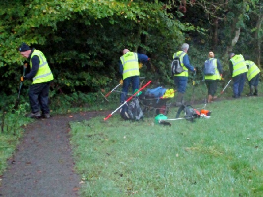 After a quick safety talk and with everyone knowing what job they were doing, off we went with two wheelbarrows of tools and left-over silver birch saplings from our silver jubilee tree planting. Two volunteers took charge of the tree planting, deciding the best position for the saplings. After the planting they rejoined the main party.