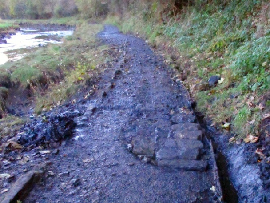 The next job was to dig a channel along one side of the stone bridge. The objective, again, was to keep water flowing along the side of the roadway not across it.