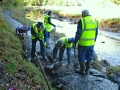 We started off using our hand winch to haul stones out of the river. It soon became apparent, however, that this was too slow so we hauled the stones out by hand to the river bank, then used the winch to get them up and onto the bank.