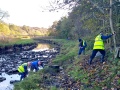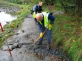 The main party went up the estuary to the wooden bridge and started to clear the gullies of mud and leaves. It wasn’t long before the expected rain started to fall, but luckily the trees that line the path provided us with some cover.