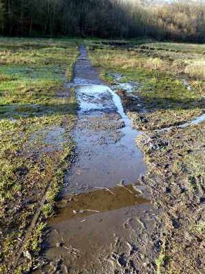 The last part of the morning session was taken up trying to remove some of the areas of lying water on the paths by creating small drainage channels. Some were successful, some not. In a number of cases it was impossible to do, as the surrounding area was as flooded as the path and the water had nowhere to go.