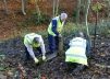 Meanwhile in a volunteer’s garage the plastic rabbit guards were being worked on to convert those from single stake anchor guards to ones anchored by 2 stakes. This involved drilling 4 additional holes and inserting two extra plastic ties. When the first 25 had been completed they were taken to site 1, where planting was well under way.