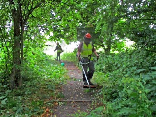 This session was postponed by two days. The usual Tuesday session had been called off because of the heat. Reason: well, have you ever tried strimming path verges wearing safety helmet and harness under full sun and in temperatures in excess of 30 °C?