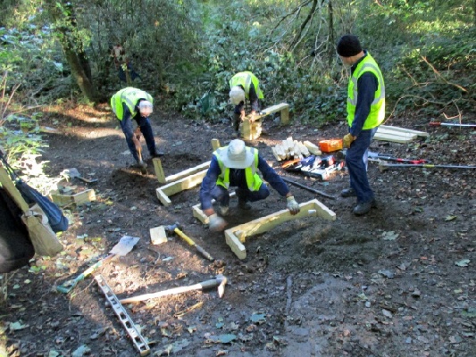 Actually, they completed their work before going-home time, so they devoted some effort to maintenance work on the old steps going down to the side burn.