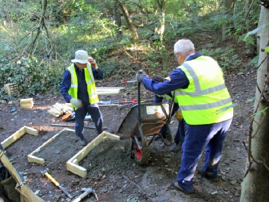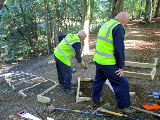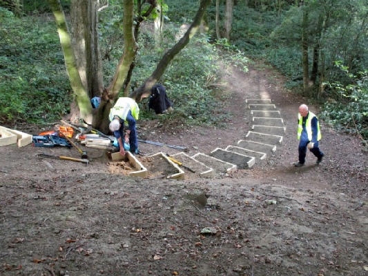 Nine volunteers formed a working party today for the task of installing a flight of steps near Holywell, on a gloriously sunny, warm late-summer day.