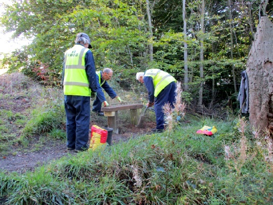That was what five of the eight volunteers were doing. The other three spent the morning installing a new seat. This is at the Dene top near the stump of the big fallen beech and looks down on the place where the side-burn runs into the Seaton Burn. We hope that will be a useful asset!