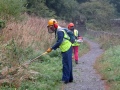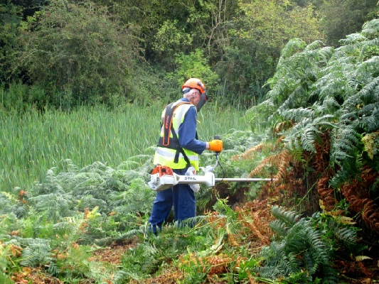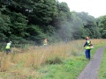 This good progress is in spite the fact that one of the strimmers broke down today – the guard was turning but the head was not. Fortunately, this was easily rectified; the strimmer was taken back to the van and some quick adjustments were made with the tools kept therein. That strimmer was back in use before the end of the session.