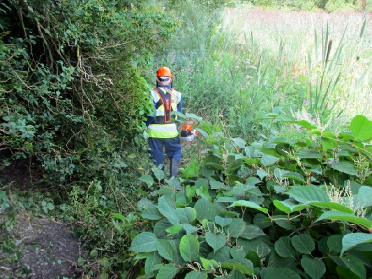 The group split up about mid-session, with three strimmers working up the side path towards the gas pumping station and two continuing on the river path to the Concorde House Steps.