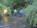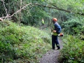 Two people, a strimmer and a raker, were sent upstream to clear the jungle around the Wait A While seat. The others crossed over the lower footbridge and proceeded in an easterly direction, strimming all the way.