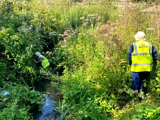So, we parked up in the informal layby opposite the entrance and trekked onto site bearing a couple of strimmers, some waders and other miscellaneous kit. When we got there, we found that the Himalayan balsam was less pervasive than last year. In fact, we have managed to dramatically reduce the infestation year-by-year since 2018.