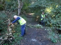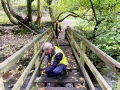 The first stop was replacing broken handrails and treads on the downstream wooden bridge. Two people started on removing rotten wood treads and replacing them with new ones while the rest of the party concentrated on the handrails. The treads had been pre-cut to length by the leader of the work party so this saved a lot of time and effort. It took less than an hour to complete this and we were off to our next project about 100 metres upstream.