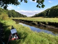 We had two tea/coffee breaks – very much needed on a hot, sunny day (which had started out rainy). After the first break, the team that had been strimming the estuary path joined the team who were working round the dipping pond area. When that work had been completed, we collectively strimmed the triangular area of land between the path and the river which is infested with bracken.
