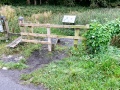 The next job was to replace broken handrails beside the stile. A new post was needed to take the handrail so a hole was dug as far down as we could go. Luckily it was close to one of our dumps of hardcore, so a half a wheelbarrow of hardcore was poured around the new post to give it some strength. Once the new rail had been cut to length and screwed to the posts we headed back towards the meadow area for the next job.