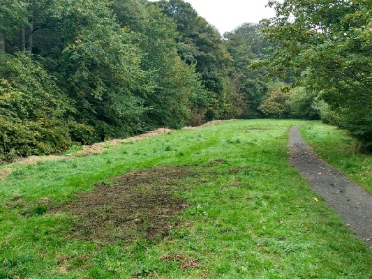 After a quick safety talk and with everyone knowing what job they were doing, off we went with two wheelbarrows of tools and left-over silver birch saplings from our silver jubilee tree planting. Two volunteers took charge of the tree planting, deciding the best position for the saplings. After the planting they rejoined the main party.